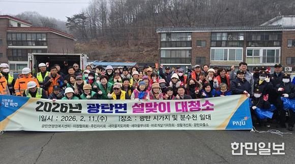 한민일보 서울포커스 진광성 기자 | 파주시 광탄면은 지난 11일 광탄 시가지와 분수천 일대에서 민관 합동으로 설맞이 대청소를 실시했다.