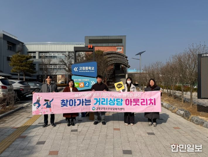 한민일보 서울포커스 박용남 기자 | 고창군이 13일 고창교육지원청 Wee센터와 함께 고창중학교 정문에서 졸업생들을 응원하고 청소년들의 안전한 성장 환경을 조성하기 위한 찾아가는 거리상담 연합 아웃리치를 진행했다.