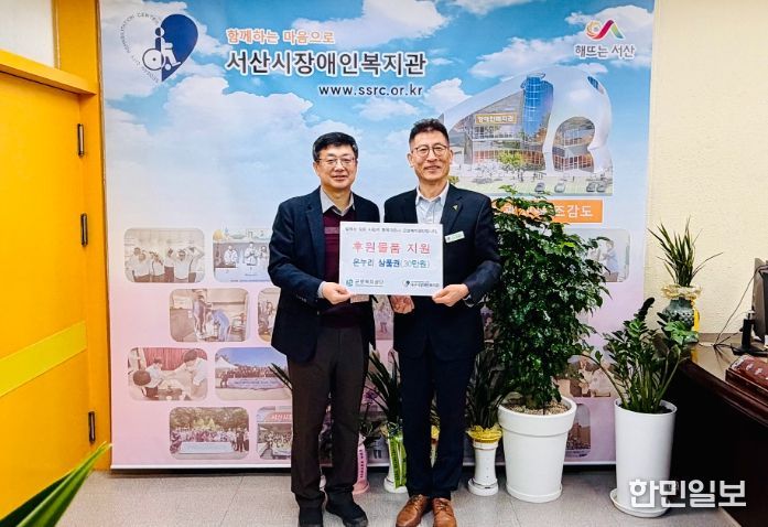한민일보 서울포커스 임경복 기자 | 근로복지공단 서산지사가 2월 12일, 설 명절을 앞두고 서산시장애인복지관을 찾아 지역 장애인 가족들에게 조금이나마 도움이 되기를 바라는 뜻으로 온누리상품권 30만 원을 전달했다.