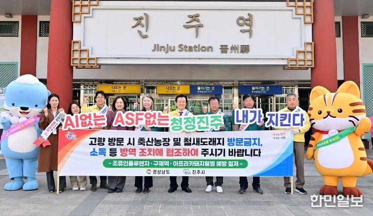 한민일보 서울포커스 김은금 기자 | 진주시는 설 연휴를 맞아 사람과 차량의 많은 이동이 예상됨에 따라 구제역과 고병원성 조류인플루엔자(AI)와 같은 재난형 가축전염병의 유입 차단을 위해 귀성객이 몰리는 진주역에서 가축방역 홍보를 하는 등 가축전염병 차단방역에 최선을 다하고 있다.