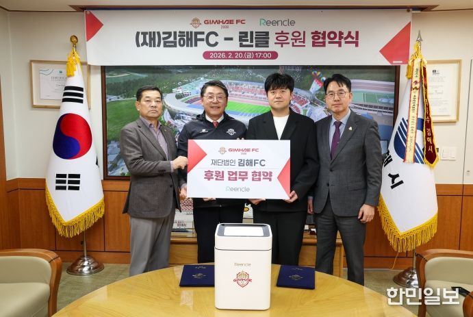 한민일보 서울포커스 최성훈 기자 | 재단법인 김해FC가 지역 내 혁신 기업과의 파트너십을 통해 구단 경쟁력 강화와 지역 상생이라는 두 마리 토끼 잡기에 나섰다. 김해FC는 20일, 가정용 음식물처리기 전문 브랜드인 ‘린클(Reencle)’과 공식 후원 협약을 체결했다고 밝혔다. 이번 협약은 김해FC의 중장기 발전 5대 전략 중 하나인 브랜드 협력 프로젝트의 핵심 사업, ‘아이언 유니티 네트워크(Iron Unity Network)’ 구축의 일환으로 성사됐다.