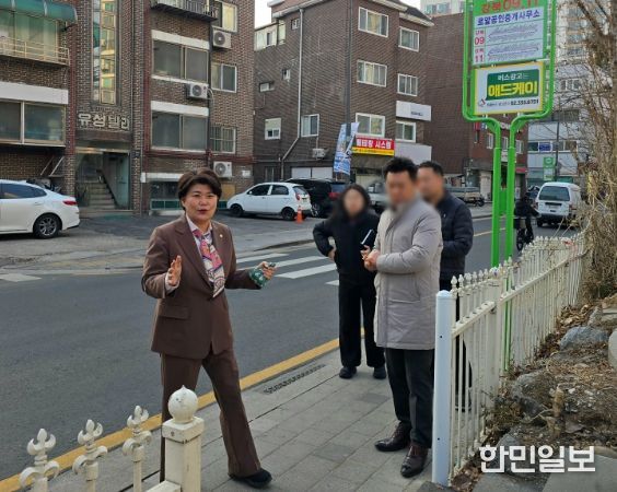 한민일보 서울포커스 국용호 기자 | 강북구의회 김명희 의장(번1·2동, 수유2·3동)은 지난 2월 20일, 번2동 오현로31길 일대 버스정류장 관련 민원 현장을 찾아 주민 불편 사항을 직접 확인했다. 이날 현장에는 강북구청 김석용 교통행정과장과 신하형 도로관리과장, 번동5단지 관리소 관계자가 함께 참석해 현황을 공유하고 개선 방향을 논의했다.