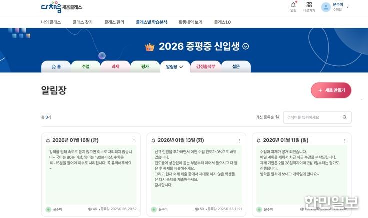 먼저 증평중학교는 예비 신입생의 중학교 진학 준비를 돕기 위해 '2026학년도 신입생 과제 및 다채움 수강 안내' 프로그램을 운영하고 있다.