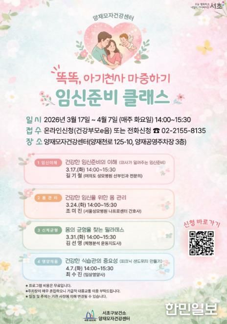 한민일보 서울포커스 곽중희 기자 | 서울 서초구가 2026년을 맞아 양재모자건강센터의 모자건강 프로그램을 ‘온가족 활력 프로그램’으로 새롭게 단장하여 확대 운영한다고 밝혔다.