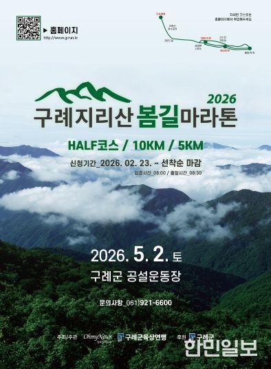 한민일보 서울포커스 최성훈 기자 | 전남 구례군은 아름다운 자연환경을 배경으로 한 ‘제1회 구례 지리산봄길 마라톤대회’가 오는 5월 2일 구례공설운동장에서 개최된다고 밝혔다.