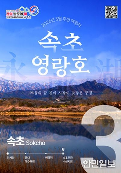 한민일보 서울포커스 곽중희 기자 | 강원특별자치도와 강원관광재단은 2026년 강원 방문의 해 3월 추천 여행지로 속초시와 동해시를 선정하여 대대적인 홍보마케팅을 추진한다고 밝혔다.
