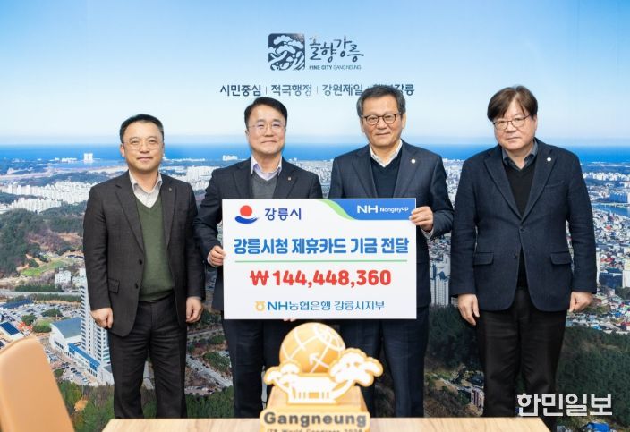 한민일보 서울포커스 임경복 기자 | 강릉시는 24일 오전 10시 시청 8층 회의실에서 김홍규 강릉시장과 박종범 NH농협은행 강릉시지부장 등이 참석한 가운데 NH농협은행 제휴카드 적립금 전달식을 개최한다.