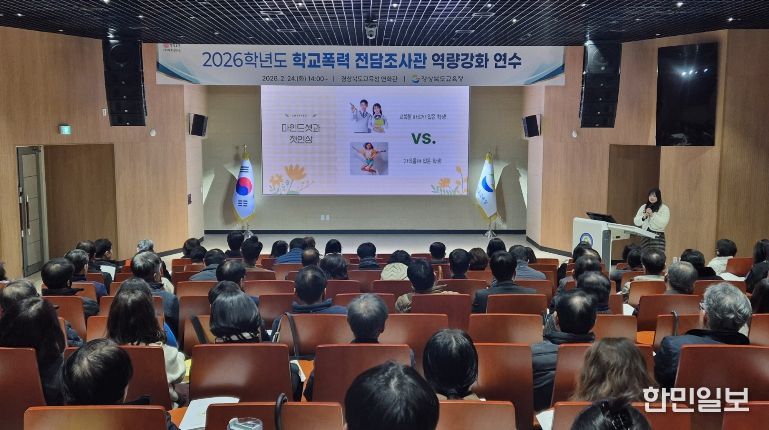 한민일보 서울포커스 임경복 기자 | 경북교육청(교육감 임종식)은 24일 본청 행복지원동 연화관에서 도내 학교폭력 전담조사관 150명과 지역별 업무 담당자 22명 등 총 170여 명이 참석한 가운데 ‘2026학년도 제로센터 학교폭력 전담조사관 역량 강화 연수’를 개최했다고 밝혔다.