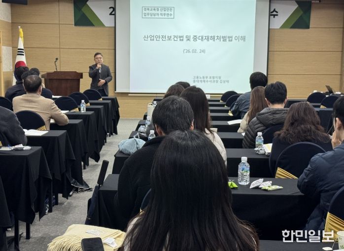 한민일보 서울포커스 임경복 기자 | 경북교육청은 24일부터 25일까지 1박 2일간 경주시에 있는 더케이호텔경주에서 도내 22개 교육지원청 업무 담당자 44명을 대상으로 ‘2026 산업안전보건・중대재해 예방 직무연수’를 개최했다고 밝혔다.