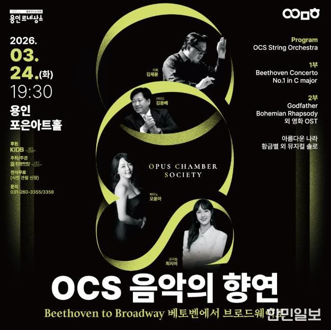 한민일보 서울포커스 김성윤 기자 | 용인문화재단은 오는 3월 24일 용인포은아트홀에서 오퍼스 체임버 소사이어티(Opus Chamber Society, 이하 OCS)와 공동으로 'OCS 음악의 향연, Beethoven to Broadway' 공연을 개최한다.
