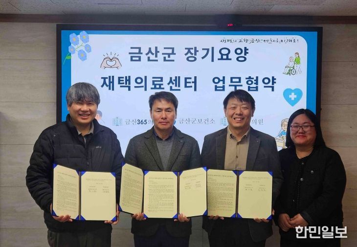 한민일보 서울포커스 유돈상 기자 | 금산군보건소는 지난 24일 보건소장실에서 지역 의료기관인 금산365의원, 금산한의원과 장기요양 재택의료센터 시범사업 업무협약을 체결했다.