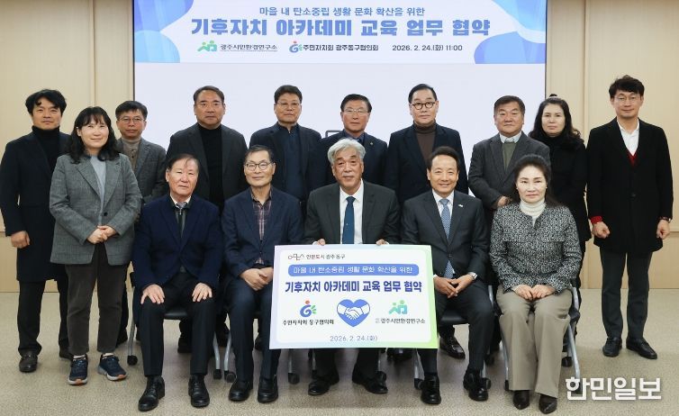 한민일보 서울포커스 진광성 기자 | 광주 동구는 지난 24일 주민자치회 동구협의회, (사)광주시민환경연구소와 기후위기 대응 역량 강화를 위한 업무협약을 체결하고, 관내 13개 동을 대상으로 ‘기후자치 아카데미’를 운영했다고 밝혔다.
