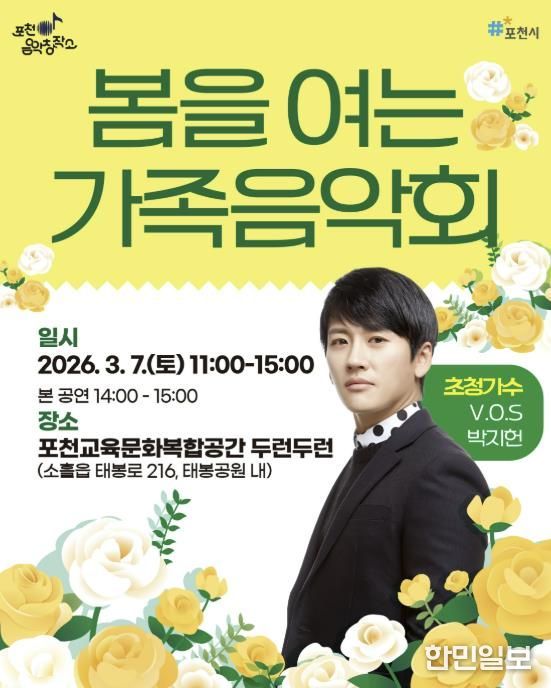 한민일보 서울포커스 심기옥 기자 | 포천시는 오는 3월 7일 포천시 교육문화복합공간 두런두런에서 ‘포천음악창작소, 봄을 여는 가족음악회’를 개최한다.
