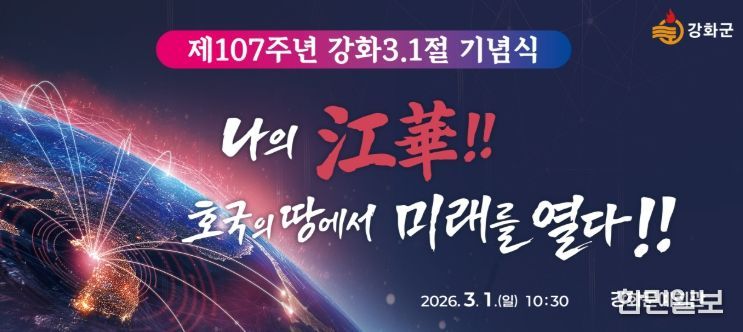 한민일보 서울포커스 김용택 기자 | 강화군은 오는 3월 1일 오전 10시 30분, 강화문예회관 대강당에서 ‘제107주년 삼일절 기념식’을 개최한다.