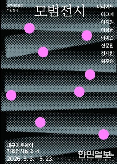 한민일보 서울포커스 김봉순 기자 | 대구문화예술진흥원 문화예술본부가 운영하는 대구아트웨이는 올해 제1차 기획전시 '모범전시'展(전)을 오는 3월 3일부터 5월 23일까지 대구아트웨이 기획전시실 2~4실에서 개최한다.