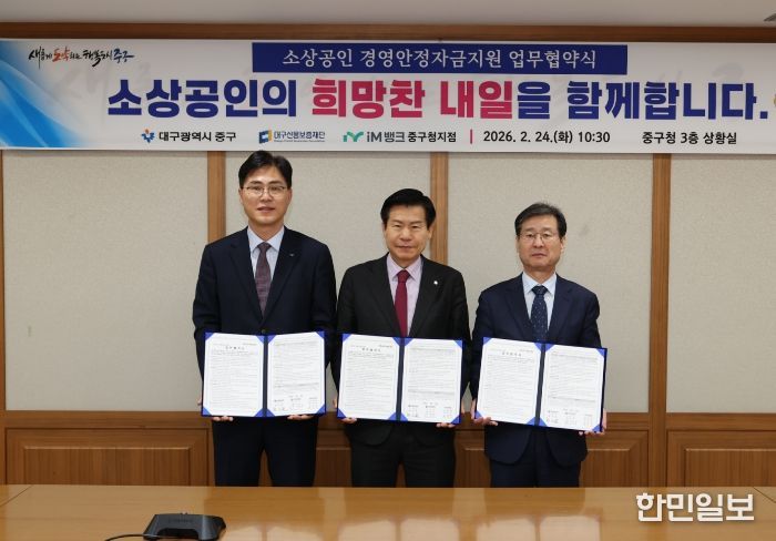한민일보 서울포커스 임철현 기자 | 대구신용보증재단이 2월 24일 중구청 상황실에서 중구청, iM뱅크 중구청지점과 소상공인 경영안정 지원을 위한 업무협약을 체결했다.