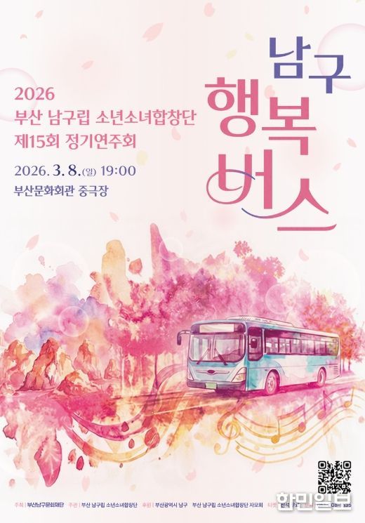 한민일보 서울포커스 임광현 기자 | (재)부산남구문화재단은 남구립 소년소녀합창단이 오는 3월 8일 오후 7시 부산문화회관 중극장에서 '부산 남구립 소년소녀합창단 제15회 정기연주회 - 남구 행복버스'를 개최한다고 밝혔다.