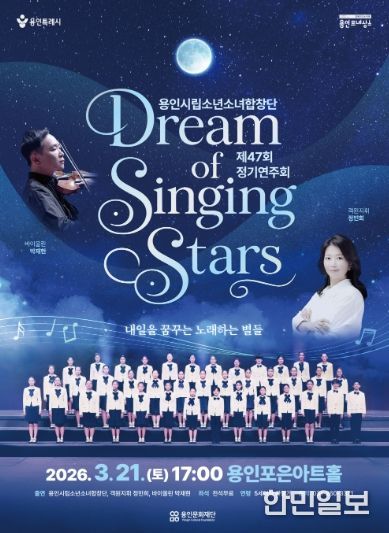 한민일보 서울포커스 김성윤 기자 | 용인문화재단은 오는 3월 21일 용인포은아트홀에서 용인시립소년소녀합창단 제47회 정기연주회'Dream of Singing Stars'를 개최한다고 밝혔다.