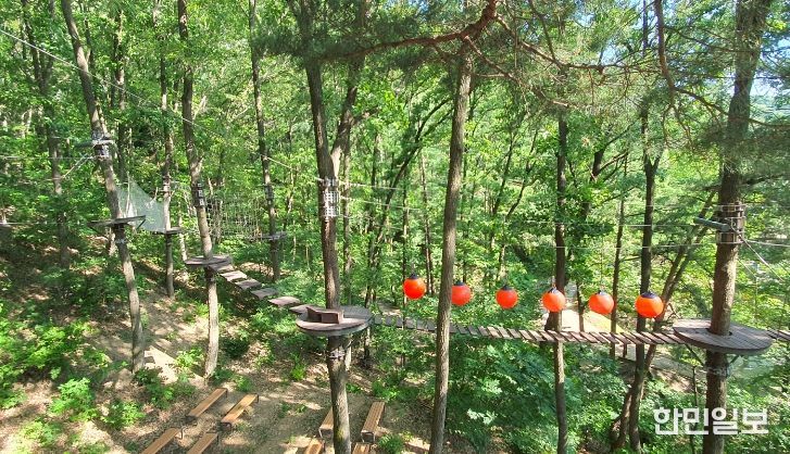 이용 요금은 짚코스터와 숲모험시설은 7,000원, 공중네트는 성인 5,000원, 어린이 3,000원이다.