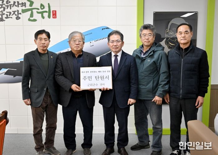 한민일보 서울포커스 김봉순 기자 | 군위군 주민들이 뜻을 모아 대구~경북 광역철도 사업의 조속한 추진을 촉구하는 주민 탄원서 및 서명부를 군위군수에게 제출했다.