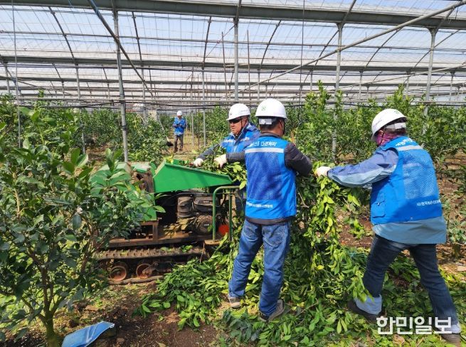 한편 제주농업기술센터는 지난해 123농가 42.8ha에 대해 감귤 전정 가지 파쇄 서비스를 지원한 바 있다.