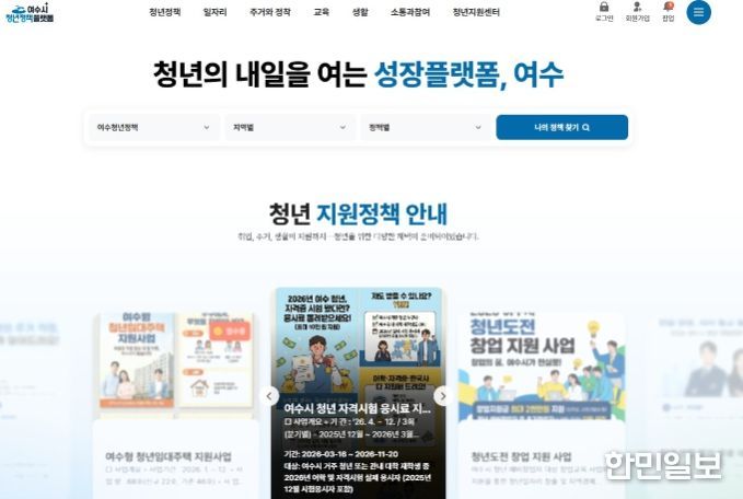 한민일보 서울포커스 임광현 기자 | 여수시는 지난 25일 ‘여수시 청년정책플랫폼 구축사업’을 완료하고 최종 용역보고회를 개최했다고 밝혔다.