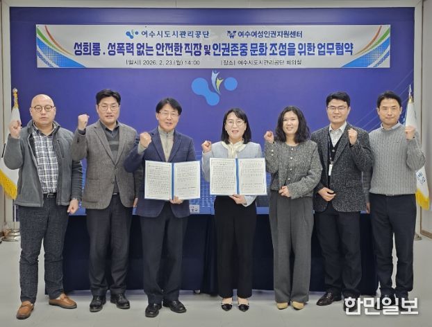 한민일보 서울포커스 임광현 기자 | 여수시도시관리공단은 성평등한 조직문화 정착과 인권친화적 공공시설 조성을 위해 여수여성인권지원센터(센터장 윤은미), 여수시 여성친화도시 시민참여단 위하다WE_하다(단장 이현영)와 잇달아 업무협약을 체결했다고 27일 밝혔다.