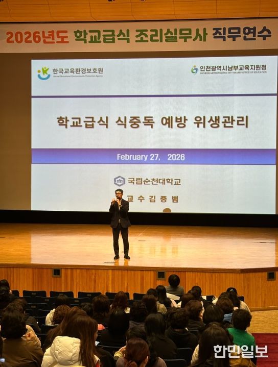 한민일보 서울포커스 유창렬 기자 | 인천남부교육지원청은 신학기를 대비해 학교급식 현장의 위생·안전 관리 역량을 강화하고자, 27일 관내 학교급식 조리실무사 및 조리직 공무원 600여 명을 대상으로 직무연수를 실시했다