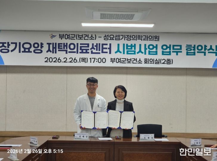 한민일보 서울포커스 유돈상 기자 | 부여군은 거동이 불편한 장기요양 수급자가 재택에서 안정적으로 의료서비스를 받을 수 있도록 지원하는 ‘장기요양 재택의료센터 시범사업’ 추진을 위해 성요셉가정의학과의원과 업무협약을 체결했다고 3일 밝혔다.