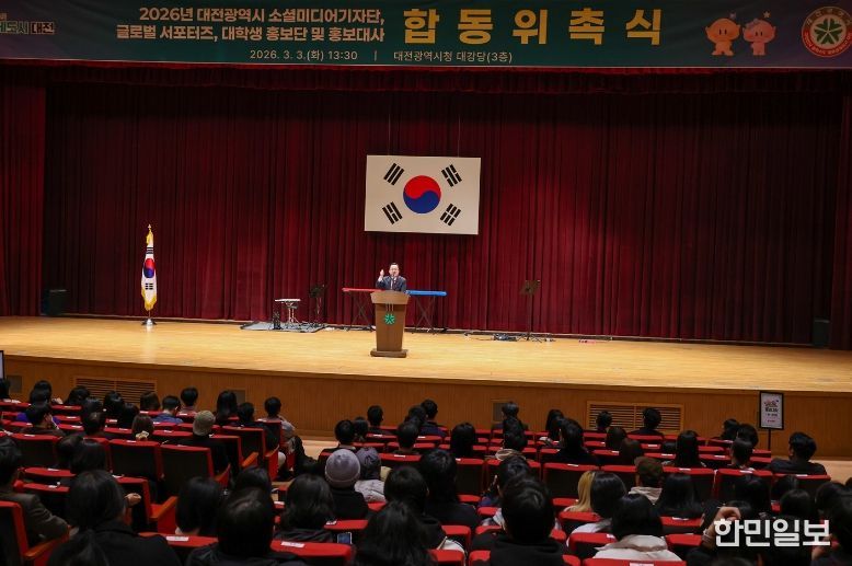 한민일보 서울포커스 김서윤 기자 | 대전시는 3일 오후 3시 시청 대강당에서 ‘2026년 소셜미디어 기자단, 글로벌 서포터즈, 대학생 홍보단 및 홍보대사 합동 위촉식’을 개최했다.