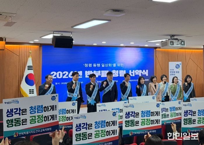 한민일보 서울포커스 김용택 기자 | 전북특별자치도전주교육지원청은 3일 영재교육원 시청각실에서 청 직원 전체를 대상으로 '2026년 ‘청렴 동행 일상화’를 위한 반부패·청렴 서약식'을 개최했다.