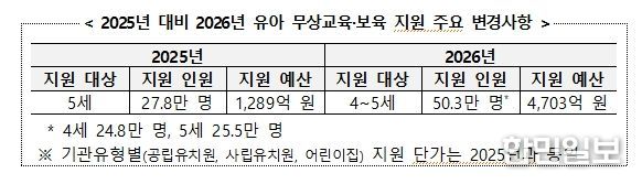 한민일보 서울포커스 임경복 기자 | 교육부는 2026년부터 유아 무상교육·보육 지원 대상을 4~5세로 확대한다.