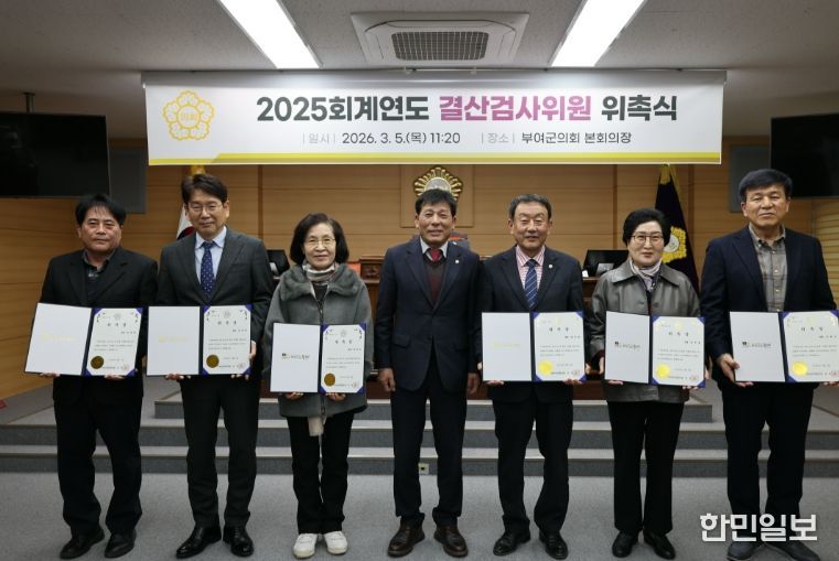 한민일보 서울포커스 유돈상 기자 | 부여군의회는 5일 본회의장에서 제299회 부여군의회 임시회 제1차 본회의를 통해 선임된 2025 회계연도 결산검사위원에 대한 위촉장 수여식을 가졌다고 밝혔다.