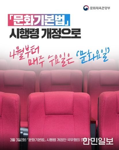 한민일보 서울포커스 임경복 기자 | 「문화기본법」 시행령 개정으로 4월부터 매주 수요일은 '문화요일'
