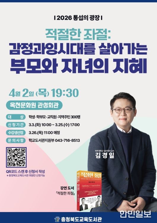 한민일보 서울포커스 임경복 기자 | 충청북도교육청 직속기관 교육도서관은 학생과 학부모, 교직원, 지역주민이 함께 삶의 지혜와 인문학적 통찰을 나누는 프리미엄 인문 강연 '통섭의 광장'을 운영한다고 밝혔다.