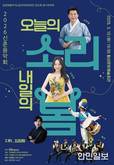 한민일보 서울포커스 곽중희 기자 | 강원특별자치도립국악관현악단이 2026년 첫 정기공연으로 신춘연주회 〈오늘의 소리, 내일의 봄〉을 선보인다.