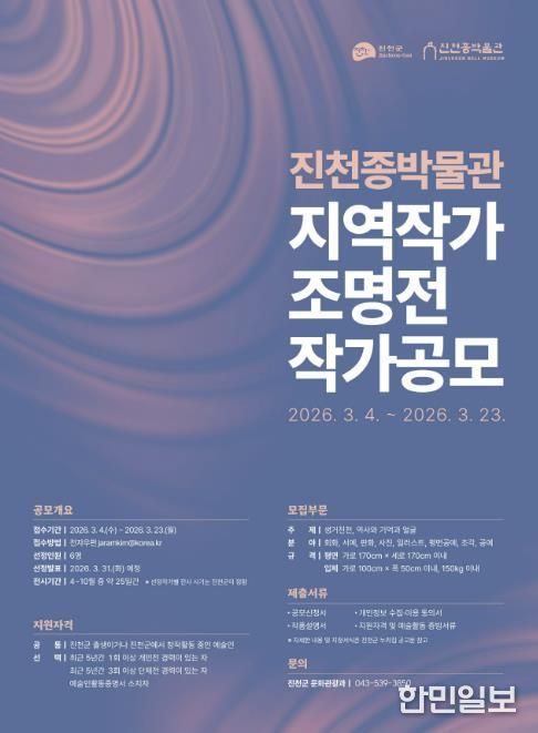 한민일보 서울포커스 김다남 기자 | 충북 진천종박물관이 지역 예술인의 창작활동을 지원하고 지역 문화예술의 저변을 넓히기 위해 ‘지역작가 조명전: 틈새갤러리’참여 작가를 공개 모집한다.