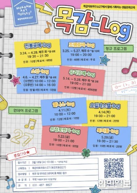 한민일보 서울포커스 유현민 기자 | 시흥시는 목감아트하우스27에서 운영하는 상반기 생활문화교육 ‘목감-로그(log)’ 참여자를 모집한다.