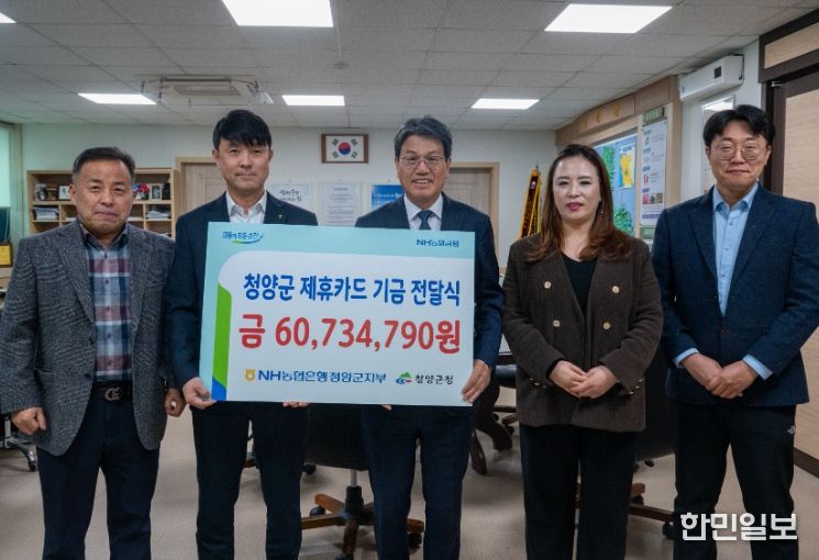 한민일보 서울포커스 임경복 기자 | 청양군은 NH농협은행 청양군지부(지부장 이동수)로부터 지난해 제휴카드 사용으로 발생한 적립 기금 6,073만 원을 전달받았다고 6일 밝혔다.