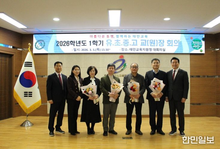 한민일보 서울포커스 임경복 기자 | 충청남도태안교육지원청은 3월 5일 태안교육지원청 대회의실에서 관내 유‧초‧중‧고 교장(원장), 교육지원청 담당자 60명이 참석한 가운데 2026학년도 1학기 유‧초‧중‧고 교장(원장) 회의를 개최했다.