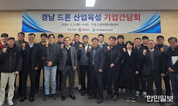 한민일보 서울포커스 임철현 기자 | 경상남도는 5일 고성 드론개발시험센터에서 도내 드론 기업과 간담회를 열고 산업 활성화 방안과 현장 애로사항을 청취했다고 밝혔다.