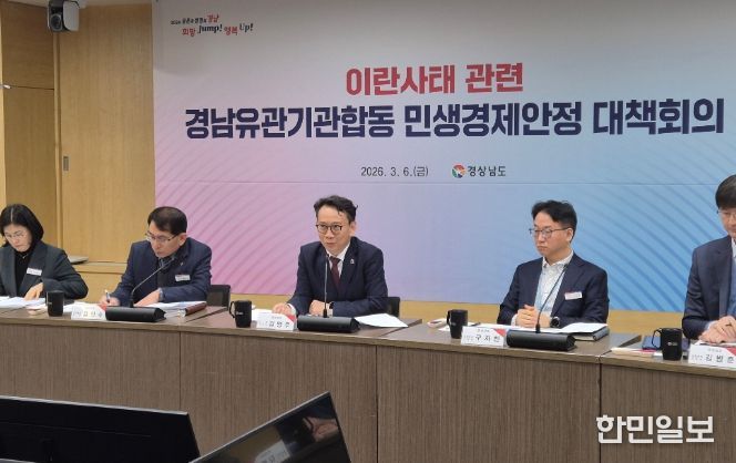 한민일보 서울포커스 임철현 기자 | 경상남도는 최근 이란 사태로 인한 국제 정세 불안과 에너지·금융시장 변동 가능성에 대응하기 위해 6일 도청에서 도내 유관기관이 함께 하는 ‘민생경제안정 대책회의’를 개최했다고 밝혔다.