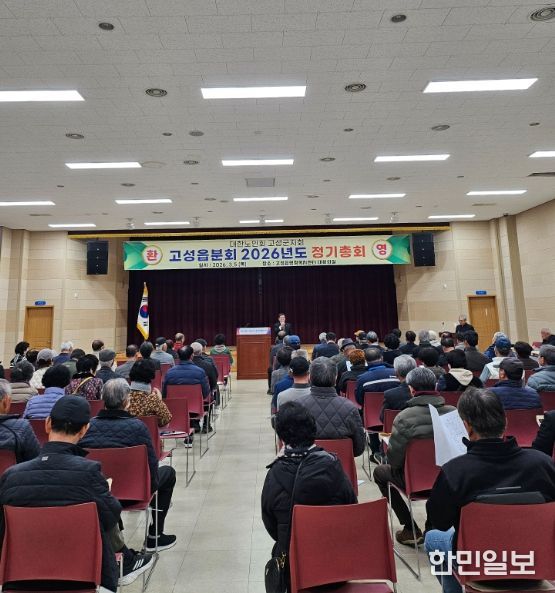 한민일보 서울포커스 김은금 기자 | 대한노인회 고성군지회 고성읍분회(분회장 장정도)는 3월 5일 고성읍 행정복지센터 대회의실에서 고성읍 49개소 경로당 회장 및 총무, 내빈 등 약 100여 명이 참석한 가운데 2026년 정기총회를 개최했다.