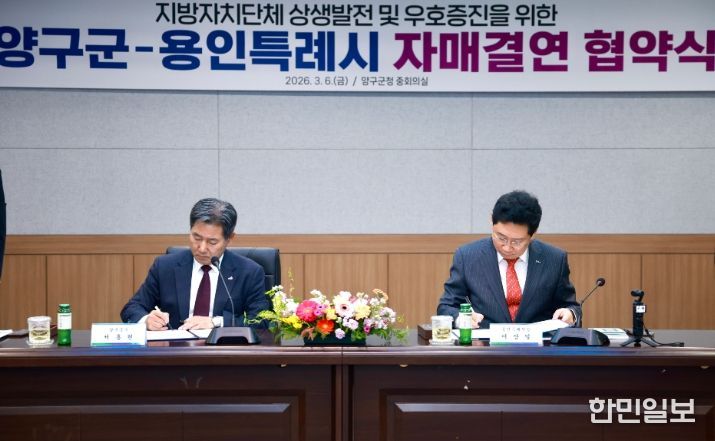 한민일보 서울포커스 김성윤 기자 | 용인특례시는 6일 강원특별자치도 양구군과 자매결연을 하고, 두 도시의 교류와 발전을 위해 적극 협력하기로 했다.
