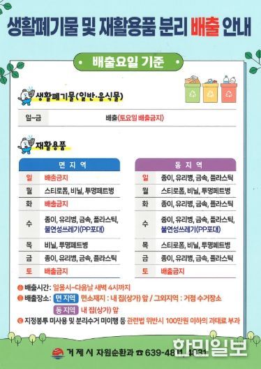 한민일보 서울포커스 김은금 기자 | 거제시는 생활폐기물의 올바른 배출 문화를 정착시키고 깨끗한 도시환경을 조성하기 위해‘생활폐기물 분리·배출 도우미’를 채용·운영하고 올해부터 불법 배출 쓰레기에 대한 단속과 과태료 부과도 강화할 방침이다.