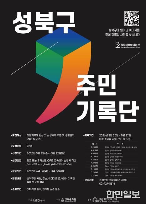 한민일보 서울포커스 김봉순 기자 | 서울 성북구가 성북구 주민기록단 교육생을 모집한다. 성북구는 성북문화원과 함께 성북구의 다양한 모습을 기록하는 성북구 주민기록단을 교육·운영하고 있다.