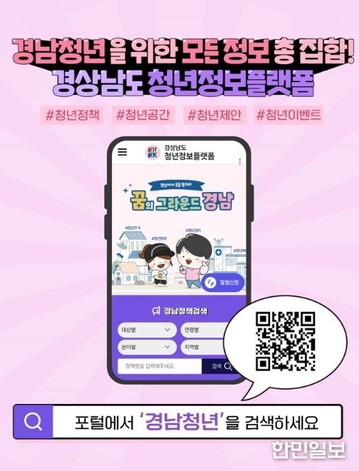 한민일보 서울포커스 박근원 기자 | 경상남도는 도내 청년 창업가들의 자유로운 본인 홍보를 위해 경남청년정보플랫폼에 ‘청년 PR(홍보)’ 메뉴를 신설한다고 밝혔다.