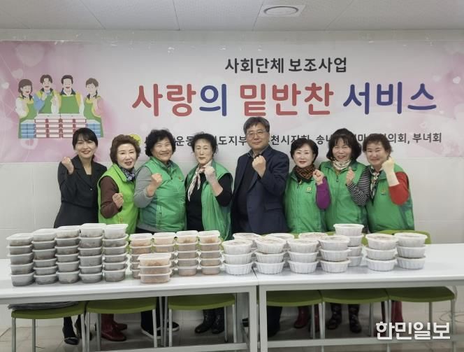 이날 새마을부녀회 회원들은 이른 시간부터 송내동 행정복지센터에서 불고기, 겉절이김치, 콩나물무침, 시금치무침 등 반찬을 직접 조리해 독거 어르신과 취약계층 21가구에 전달했다. 정성껏 마련한 밑반찬은 이웃들에게 따뜻한 식탁과 마음을 전하는 선물이 됐다.