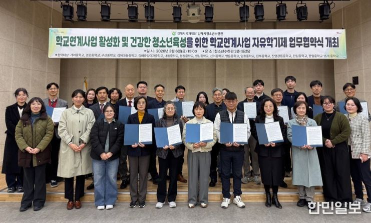 한민일보 서울포커스 김은금 기자 | (재)김해시복지재단 청소년수련관은 2026년 3월 6일 청소년수련관 2층 대강당에서 김해시 관내 15개 중학교와 함께“학교연계사업 자유학기제 운영을 위한 업무협약식”을 개최했다.