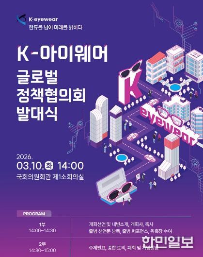한민일보 서울포커스 김봉순 기자 | 대구광역시는 3월 10일 오후 2시, 국회의원회관 제1소회의실에서 우재준 국회의원 주관으로 ‘K-아이웨어 글로벌 정책협의회 발대식’을 개최한다.